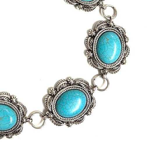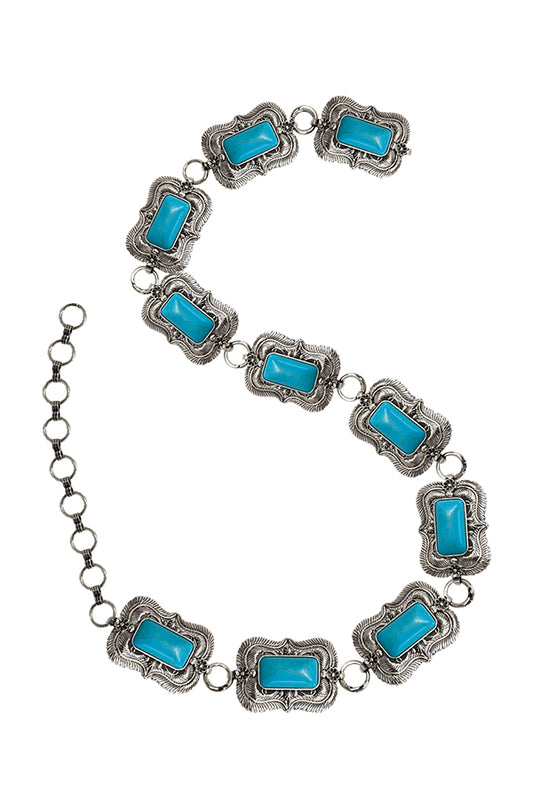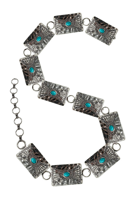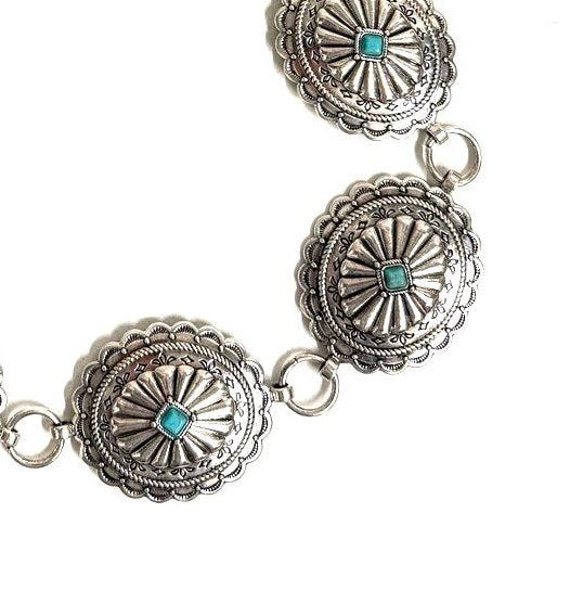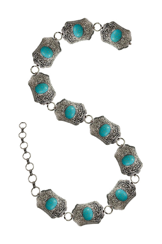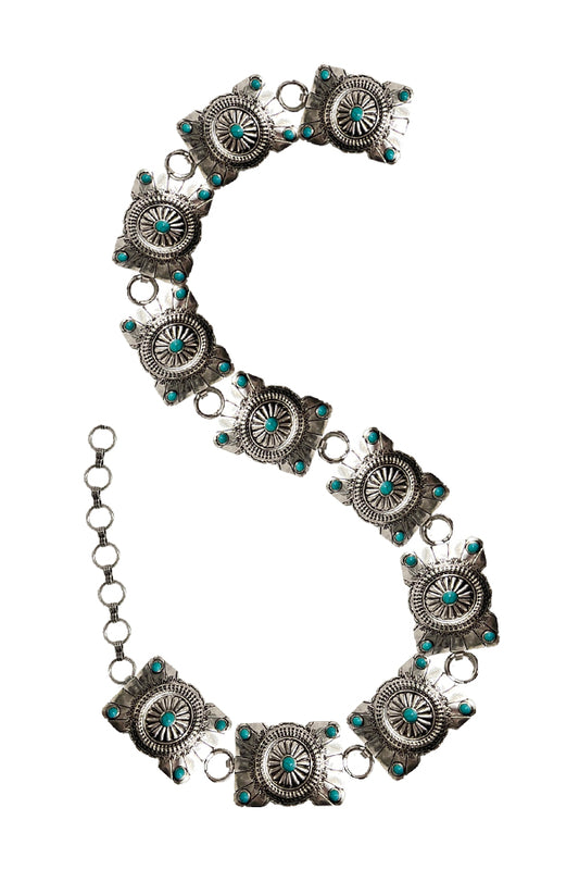 WESTERN METAL CONCHO TURQUOISE CHAIN BELT