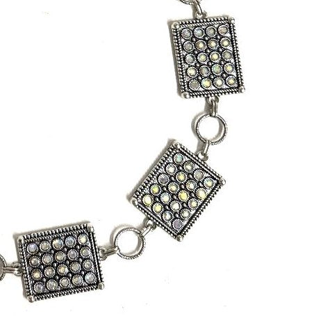 Western Crystal Silver Squash Blossom Chain Belt - S