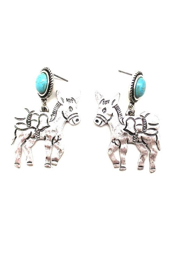 WESTERN DONKEY DESIGN TURQUOISE DANGLE EARRINGS