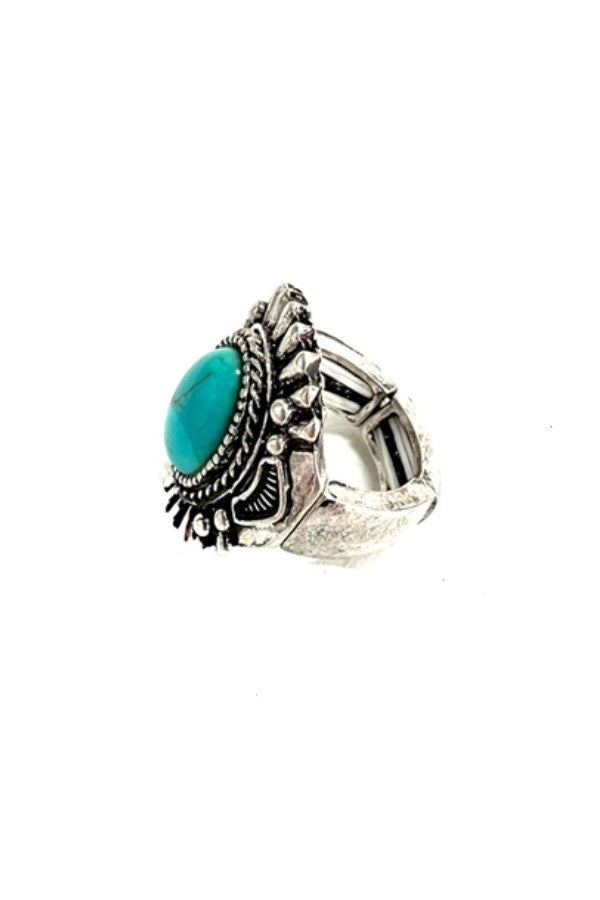 WESTERN DESIGN TURQUOISE STONE STRETCH RING