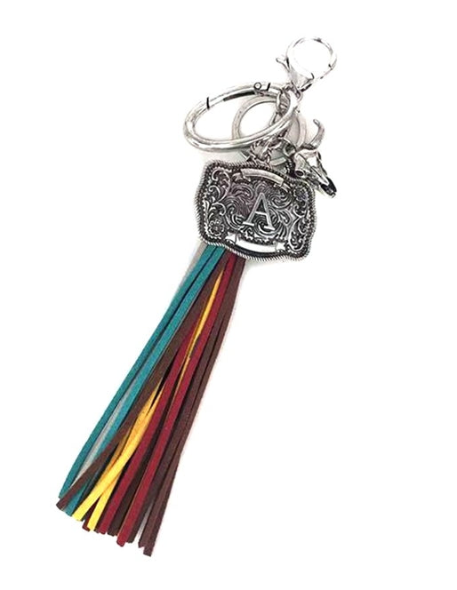 Western Belt Buckle Initial Multi Color Tassel Keychain