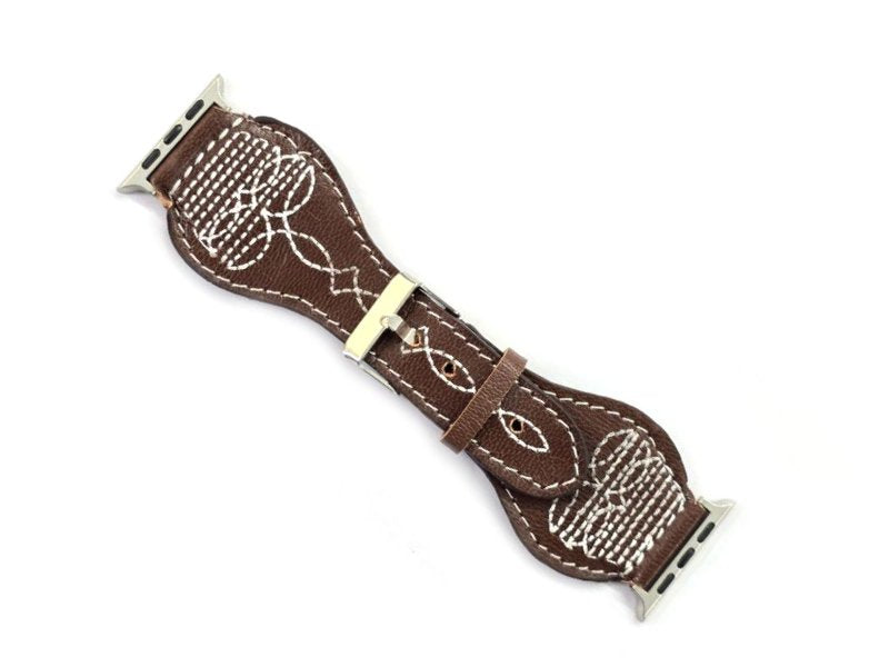 Western Boot Stitch Genuine Leather Apple Watch Band