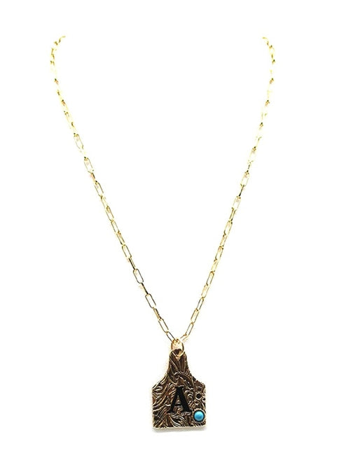 Western Cattle Tag Initial Necklace