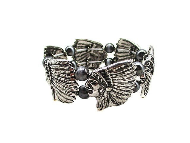 Western Indian Chief Navajo Pearl Stretch Bracelet