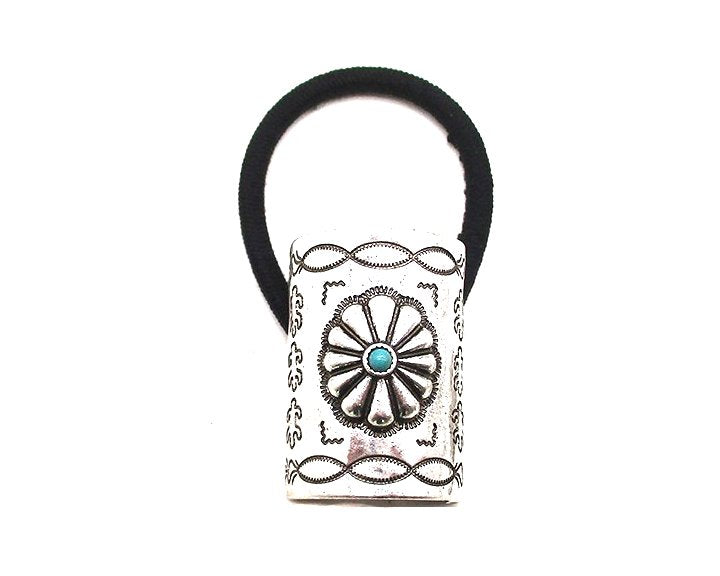 WESTERN RECTANGLE CONCHO HAIR TIE